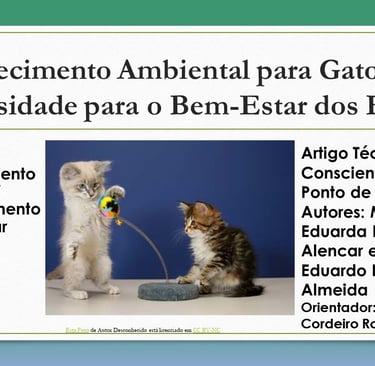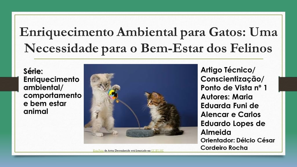 Smith Santos, J. (2022). "Enriquecimento Ambiental Para Gatos Domiciliados: Revisão Bibliográfica." Academia.edu. Disponível em: Enriquecimento Ambiental Para Gatos Domiciliados: Revisão Bibliográfica.