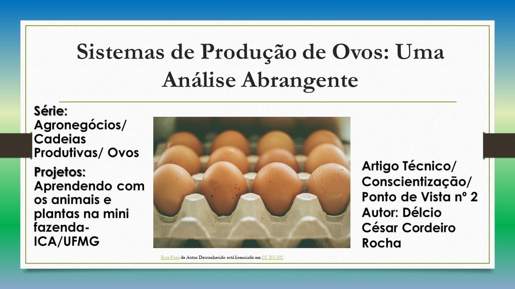 Sistemas de Produção de Ovos: Uma Análise Abrangente. Série: Agronegócios e Cadeias Produtivas/ Ovos. Artigo: Artigo técnico/ Ponto de Vista nº2 Projeto: Aprendendo com as Plantas e Animais na Mini Fazenda ICA/UFMG. Autor: Délcio César Cordeiro Rocha